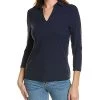 - Browne Linen-Blend Blouse in indigo chambray with mandarin collar and balloon sleeves
