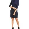 - Brynn Dress in grey with spread collar, dual chest pockets, 3/4-length sleeves, button cuffs, and self-tie sash at waist