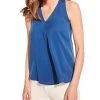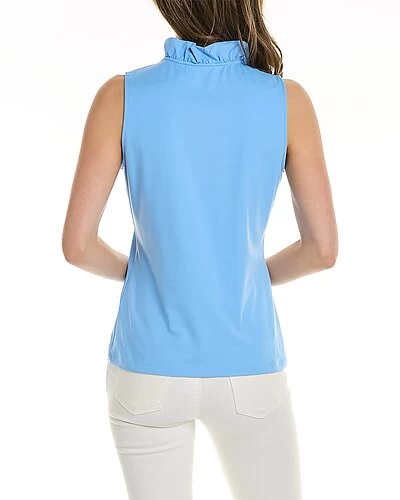 - Catalina Cloth Durham Top in solid Aquarius with ruffled V-neck