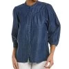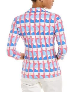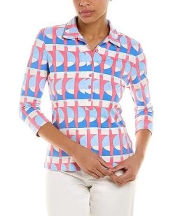 - Court Catalina Cloth Polo Top in pink and blue combo with point collar, 3/4-length sleeves