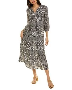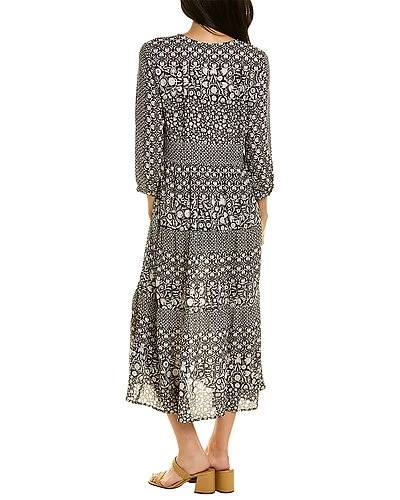- Darjeeling Midi Dress in charcoal with tiered shirring and 3/4-length sleeves
