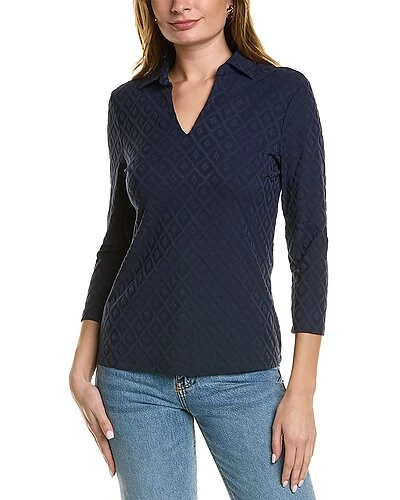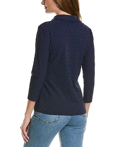 - Galena Catalina Cloth Tunic in navy with diamond jacquard design and split neck