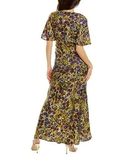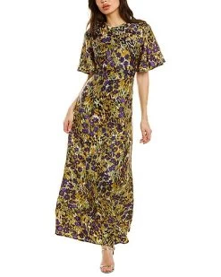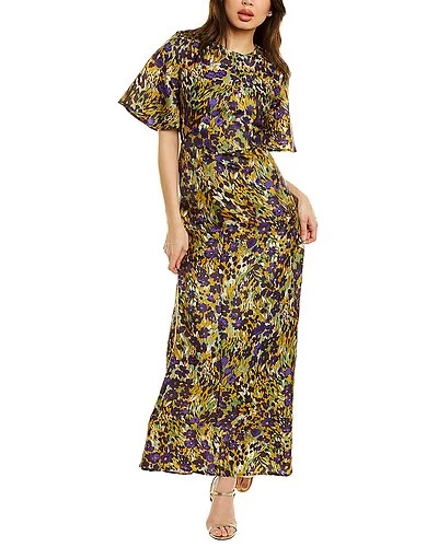 - Giovanna Silk-Blend Maxi Dress in marigold multicolor with flutter sleeves
