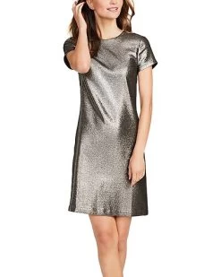 - James Mini Dress in black and champagne with cap sleeves and darting at bust