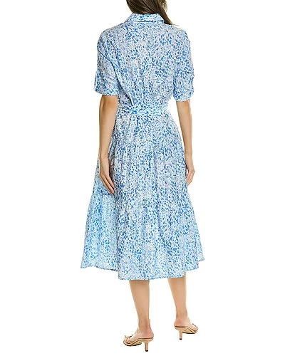 - Janelle Dress in white & blue with spread collar, elbow sleeves, and tiered skirt