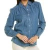 - Lois Silk-Blend Blouse in heather grey snakeskin print with barrel cuffs