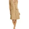 - Neville Sheath Dress in charcoal with surplice bust, 3/4-length sleeves, and ruffle wrap skirt