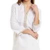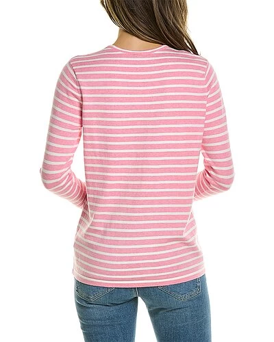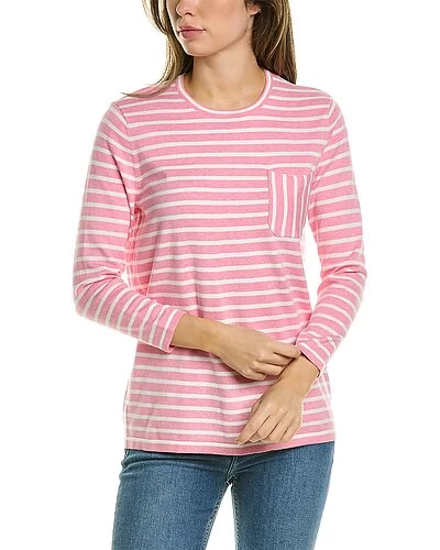 - Piper Top in pink/white with crewneck, chest pocket and 3/4-length sleeves