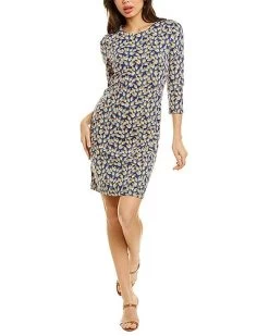 - Sophia Dress in navy & orange with 3/4-length sleeves