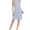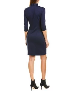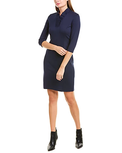 - Terin Sheath Dress in winter navy with ruffle collar and 3/4-length sleeves